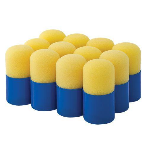 Easy-to-grip dot stampers with plastic handle and durable sponge end. Great for exploring printmaking and pattern work. Pack of 12.