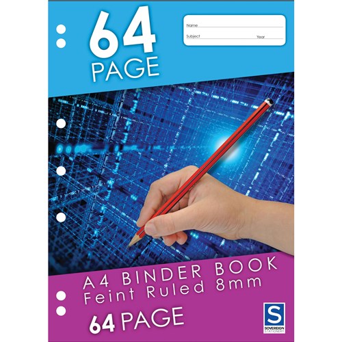 A4 64 Page 8mm Ruled 7 Hole Punched Binder Exercise Book