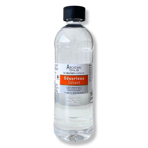 Archival Odourless Solvent is used for thinning paint and cleaning brushes. It is a safer option than using gum or mineral turpentine as it has low toxicity and is odour free. The Archival Odourless Solvent is formulated for artists who are sensitive to the odours of traditional oil mediums and solvents. They are low in toxicity and give very little vapours, making them ideal to be used in your home studio or in a shared studio.