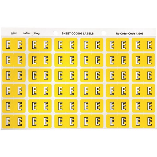Avery Side Tab Alphabetical Colour Coding Label E