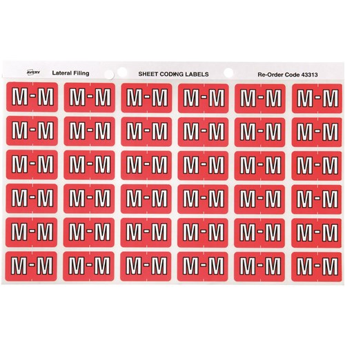 Avery Side Tab Alphabetical Colour Coding Label M