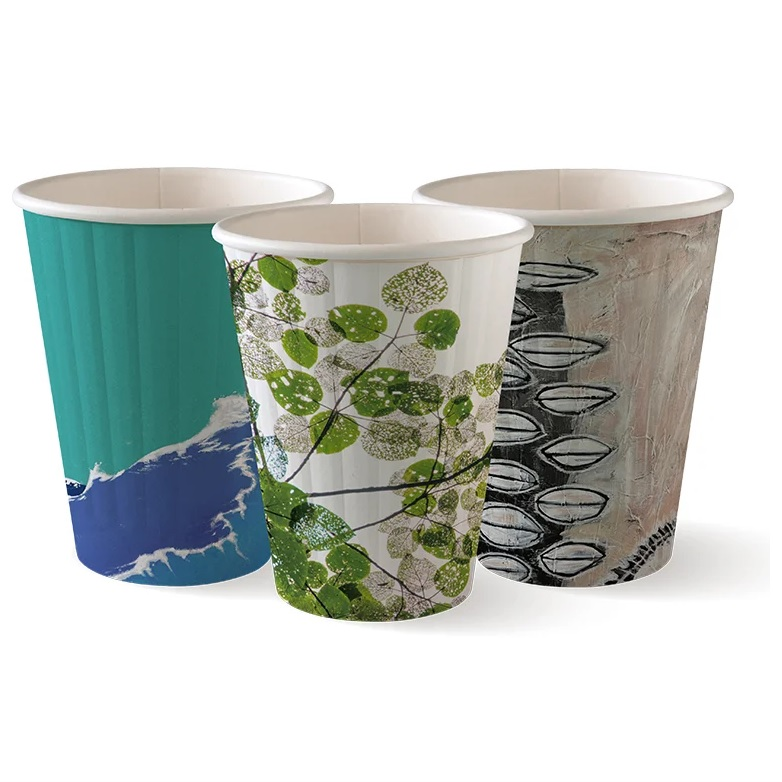 BioPak BC-8DW-Art Series 255ml/8oz 80mm Double Wall BioCup