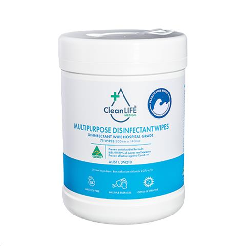 CleanLIFE Medical Multipurpose Disinfectant and Detergent Wipes are a 2 in 1 hospital grade wipe ready to use for cleaning and disinfecting a wide variety of surfaces and common touch point areas. Impregnated with a solution formulated to provide broad antimicrobial effectiveness against a range of bacteria including Staphylococcus aureus, Escherichia coli, Pseudomonas aeruginosa, Enterococcus hirae. Also proven efficacy against the COVID-19 virus. Wipe Size 140mm x 300mm For your Healthcare Facility they are: Entered on the ARTG - Wipes - AUST L 374210- Sprays - AUST L 386522 Proven 99.99% efficacy against tested germs and bacteriaProven to kill the COVID-19 virus in 60 secondsDisinfectant and detergent wipe all in oneOdourlessAlcohol free/chlorine freeSuitable for most surfaces and non-invasive devicesCompostable plant-based fibre - EN 13432Impregnated with a low-level biocideTwo active components that combine to deliver the efficiency you need in a healthcare environmentCorrect use of the CleanLIFEâ„¢ Medical Multipurpose wipe helps remove organic matter and improves infection prevention and controlBactericidal, Virucidal and Yeasticidal Plastic Free, Compostable & Biodegradable Australian Made and Manufactured