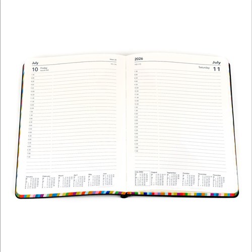 • Ribbon marker, lay flat opening and expandable back pocket.