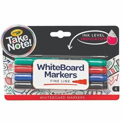 Crayola Take Note Whiteboard Markers are quick to dry but easy to erase! Vibrant colors are great for bold messages on most white boards. Each Marker has a fine line, bullet tip that is perfect for precise consistent lines and features an ink level indicator so you always know when it’s time to restock. The Whiteboard Markers are low odor, making them ideal for classrooms, offices, and meeting rooms.