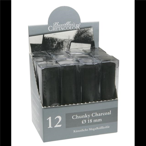 Big, dense charcoal sticks - perfect for large, bold work. The sticks are especially soft and offer deep black strokes. Each stick is individually clear plastic wrapped and is very comfortable to manipulate - simply fantastic. Sticks are 18mm diameter x 80mm long in boxes of 12 sticks.
