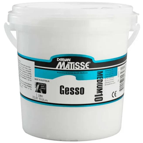 Derivan Matisse MM10 Gesso is a great permanent flexible primer for canvas, board or even paper. An intense white ground with an excellent tooth for easy paint manipulation. Matisse Gesso is a water-based product and can be thinned down with water. Use equal parts of water to Matisse Gesso when working on raw canvas/linen. If working on canvas, Matisse Gesso will tighten the canvas, making a firmer ground to paint on.