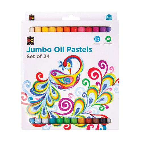 EC Jumbo Oil Pastels Assorted 24s are of superior quality, non-toxic with richly coloured pigment. Students will love the brilliant effects from using and blending these oil pastels. Pastels are round and individually wrapped in a matching colour paper sleeve for easy identification. Perfect for classroom and artroom activities. Individual pastel size: 70mm x 11mm.