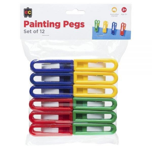 These brightly coloured plastic painting pegs are great little tools for hanging your completed artwork. Pack of 12 pegs.