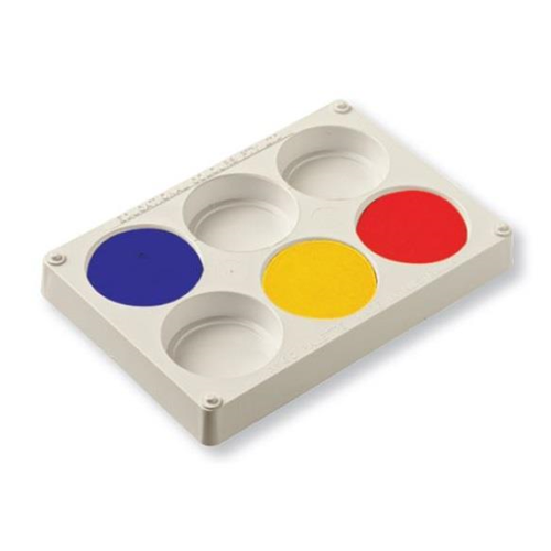 EC Plastic Palettes are made from durable plastic. Suitable for acrylic, gouache, tempera and watercolour. Perfect for young children in the classroom and for the home studio.Sturdy white palette, easy to handle and to clean. 6 deep wells. Palettes are stackable. Will suit Poster Colour blocks.