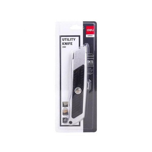 The Deli Premium Rubber Grip Utility Box Cutter is the perfect tool for anyone looking for a quick, easy, and clean way to cut through boxes, plastic, or any other material.The double-side use blades make it easy to get the job done, while the magnetic blade retainer keeps the blades in place.The integrated hanging hole also makes it easy to store and keep safe.High-quality aluminum alloy material ensures durability and long-term use.Blade Size : 70x26x12mm.