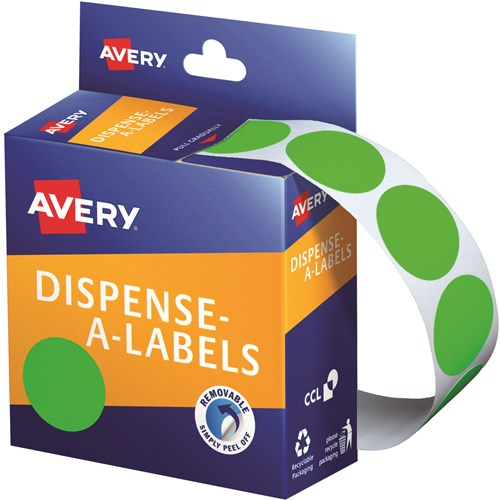 Label Avery Dispenser Pack Circle 24mm Fluro Green