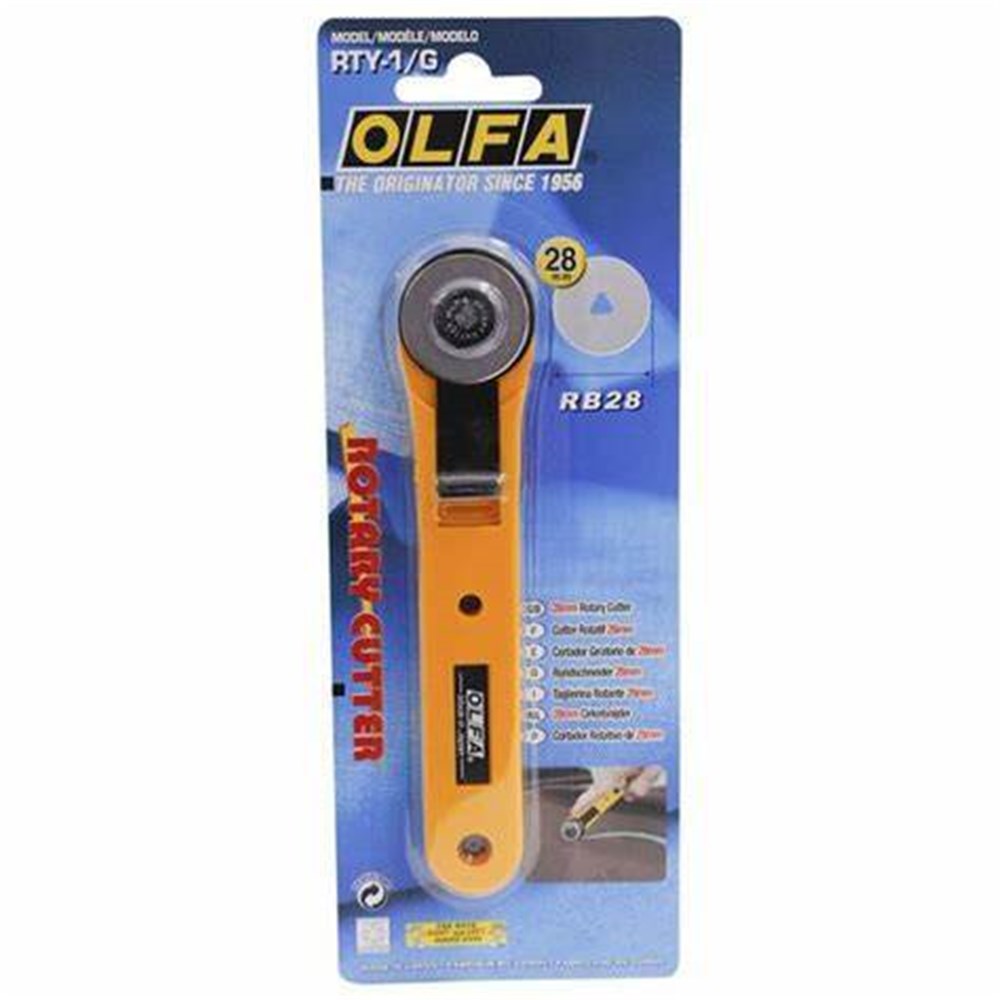 28mm OLFA Rotary Cutter is perfect for small-scale projects, miniatures and tight corners. This cutter features a durable handle with a blade cover for safety. The cutter is a rolling razor blade used to cut fabrics into shapes, strips and pieces for sewing, quilting and craft projects. The blade is made of high quality tungsten carbide tool steel for unparalleled sharpness and superior edge retention. Designed for both right- and left-handed use.