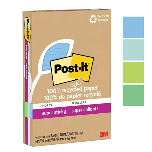 Post-It 4621R-4SST Lined Super Sticky Notes Recycled 101mm x 152mm Oasis