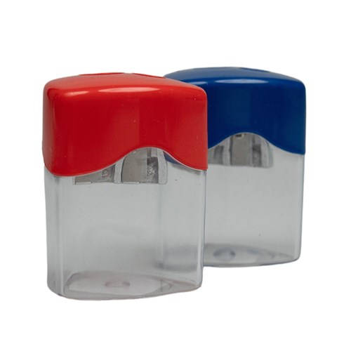 • This Stat Double Hole Triangular Sharpener Features A Generous Size Canister To Hold Your Shavings